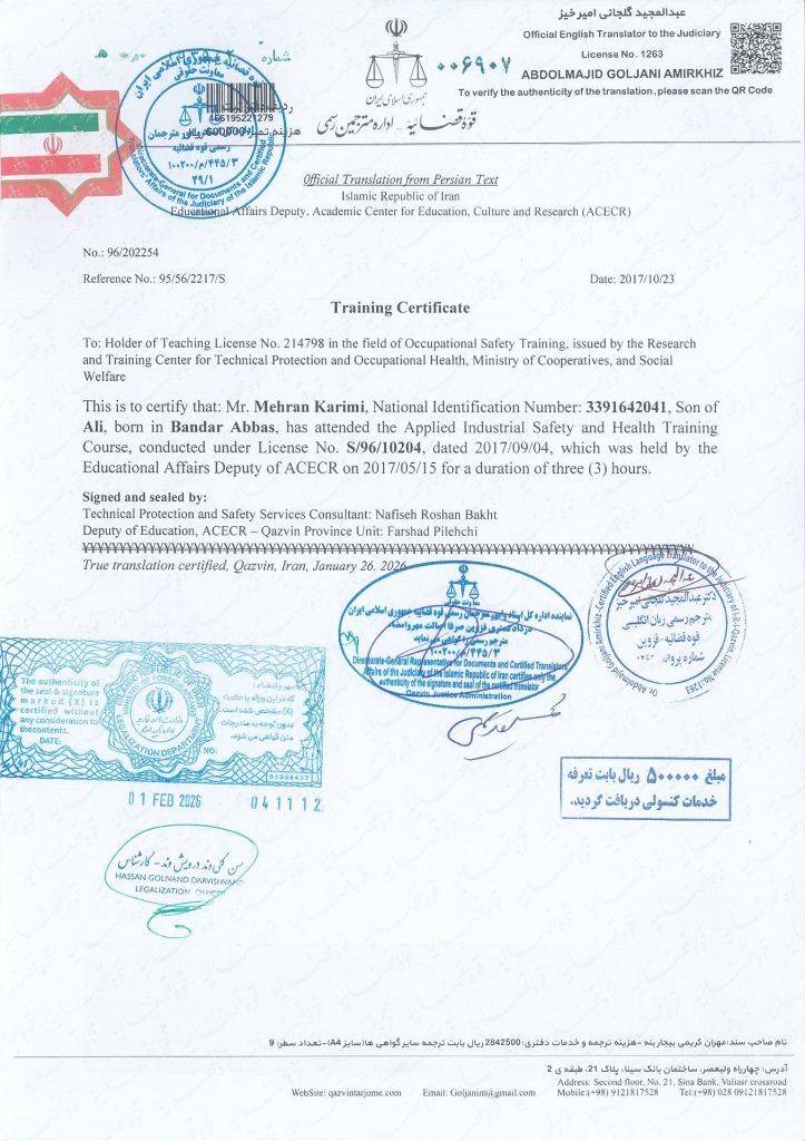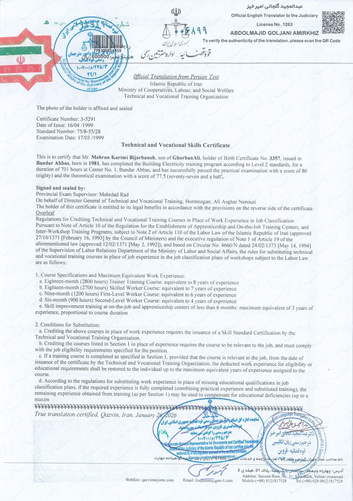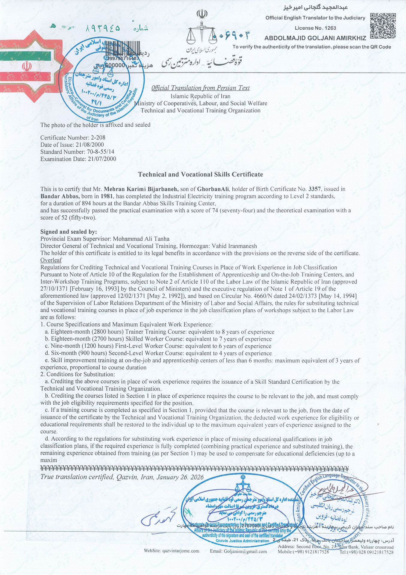 From 2000 to 2003, I worked as an Electrical Maintenance Engineer (or Electrical Repair and Troubleshooting Engineer) at Arta Naghsh Tak Company (part of Arta Industrial Group – Synthetic Fiber and Yarn Production Division), where I was responsible for diagnosing, repairing, and troubleshooting electrical faults on industrial production machinery and equipment in the synthetic fiber and yarn manufacturing plant.