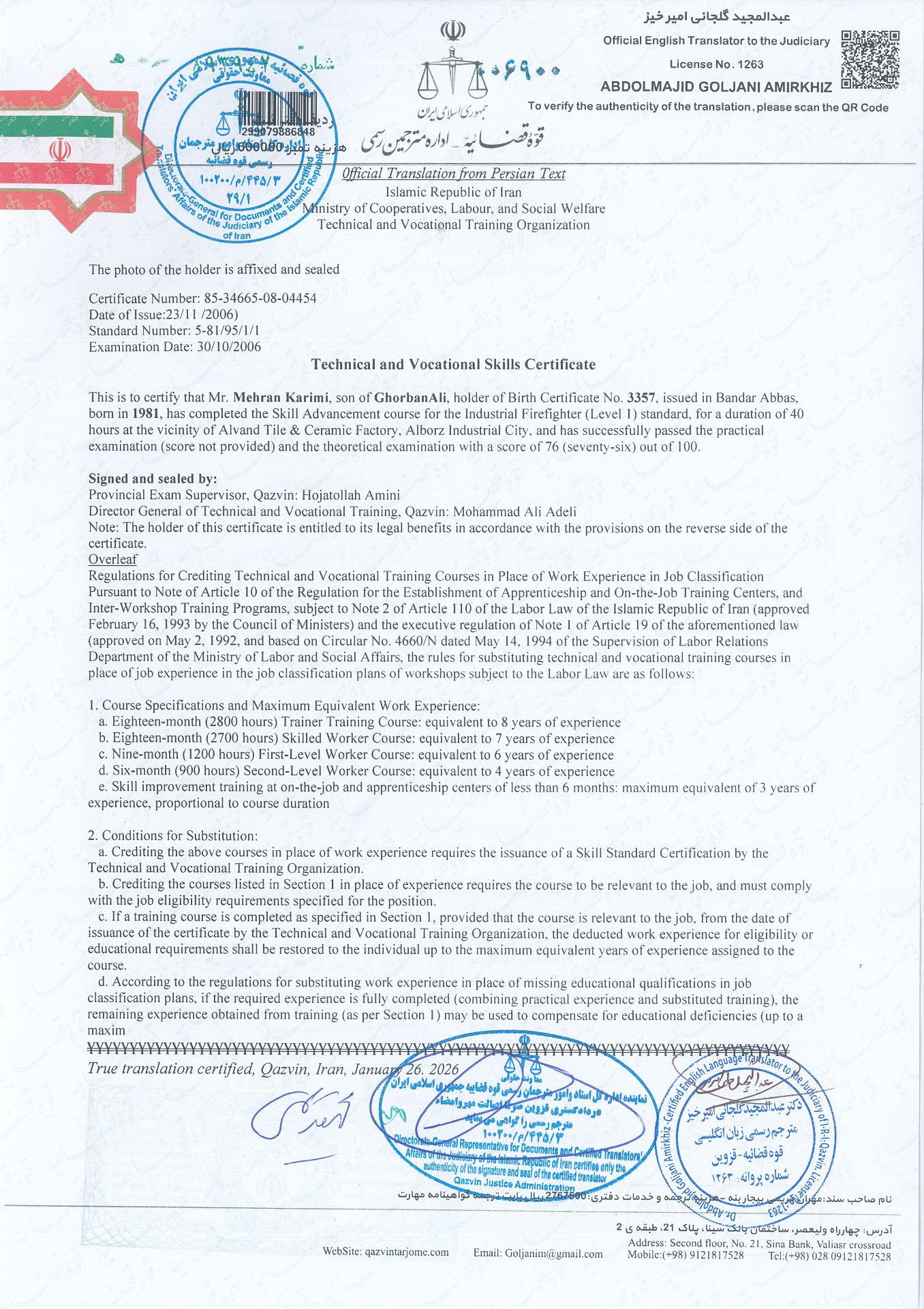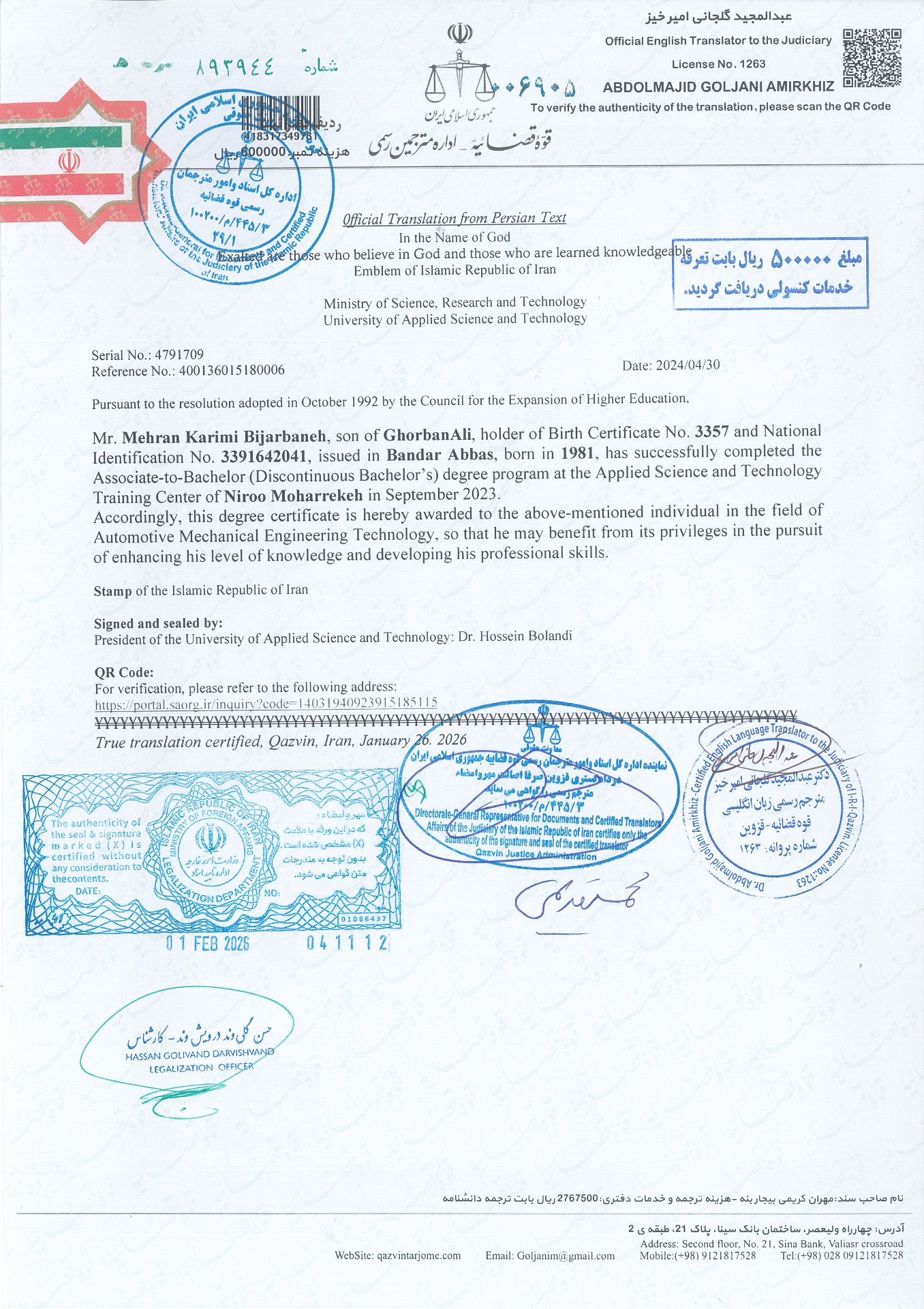 Work Experience (20 Years – Alvand Tile & Ceramic Industries Co., Qazvin, Iran) Senior Technician / Production Line Specialist in Ceramic Tile Manufacturing 20 years of continuous hands-on experience at one of Iran's leading and long-established ceramic tile producers (founded 1988, with advanced Italian technology and annual capacity in the millions of square meters). Calibration, setup, and operation of grinding, polishing, and surface finishing machines for various ceramic, porcelain, and stone tiles Troubleshooting, optimization, and maintenance of abrasive/polishing lines using diverse abrasive brands and systems Adjustment and reconfiguration of multi-stage processes in nano-coating and wax/C&A application machines Repair and upkeep of downstream equipment, including chambering and screwing units Oversight of the full production process from raw material input to final product packaging Deep expertise in maintaining and enhancing high-performance ceramic tile production lines.